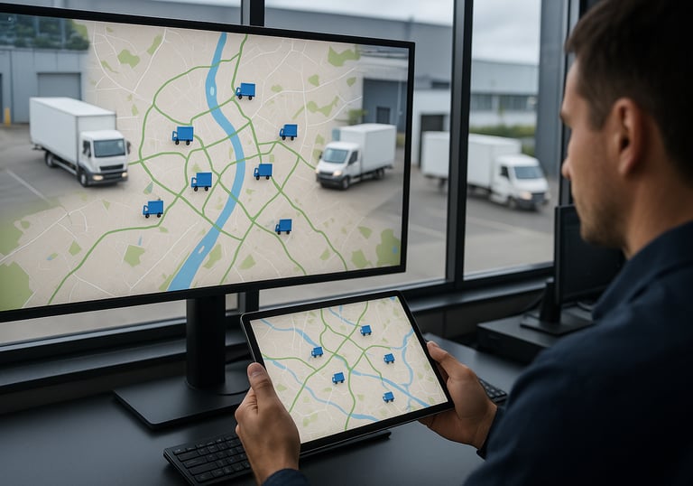 Función: Seguimiento en vivo de vehículos, rutas y entregas con estados y avisos automáticos.