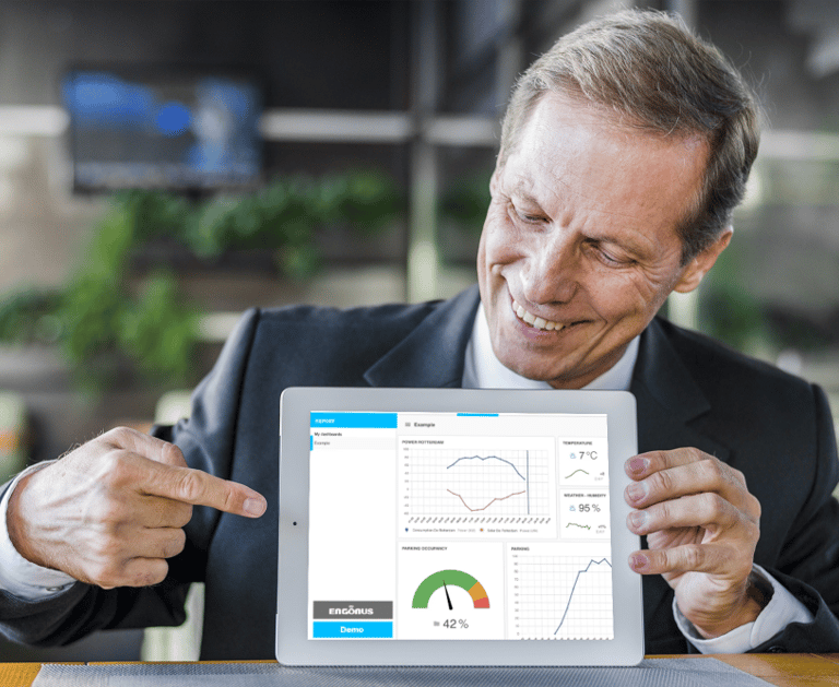 ENGONUS emplea sensores de calidad del aire, temperatura, humedad, emisiones, consumo energético y más. Su finalidad es recopilar datos ambientales y operativos para optimizar procesos, cumplir normativas y reducir costes en distintas áreas (almacén, producción, logística, etc.)