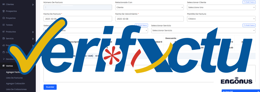 En ENGONUS ponemos a tu disposición una solución preparada para cumplir con la normativa española de facturación. La instalación es inmediata y el funcionamiento totalmente automatizado, de modo que tu empresa estará adaptada a VERI*FACTU antes de su entrada en vigor en enero de 2026.